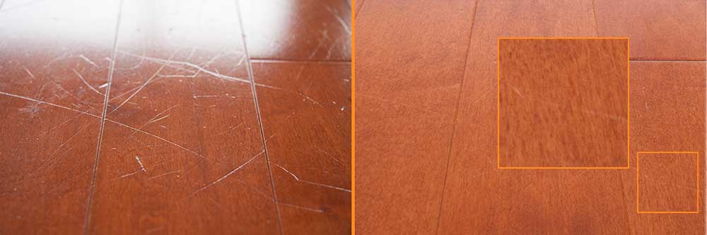 Notre système de rafraîchissement EXP Surfaces sans sablage et sans poussière est un moyen rapide, efficace et sans risque d'éliminer les égratignures et les marques d'usure sur vos planchers de bois franc prévernis. La beauté originale de vos planchers est restaurée et vous pourrez en profiter encore plusieurs années.